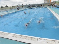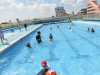 6年生の授業は水泳です。各自泳ぎの練習をした後、最後に宝さがしをしました。子ども...