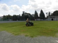 授業中、誰もいない校庭のしばっちで芝刈り機の音が聞こえました。主事さんが芝刈りを...