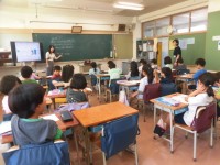 2年生の授業は国語です。学校にあるものを選び、その特徴を捉え人に説明をする学習で...