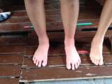足湯の様子です。 疲れよ、ふっとべ〜!!
