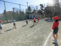 2年生の授業は体育です。ボール取りオニをしています。子どもたちは腰にタグをつけて...
