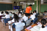 2年生の授業は外国語です。ALTの先生もいます。始めは担任の先生と英語でのじゃん...