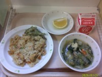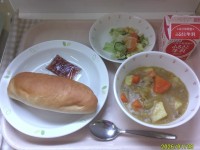 1月26日(月)今日の給食*きな粉あげパン*肉だんご入り春雨スープ*シャキシャキ...