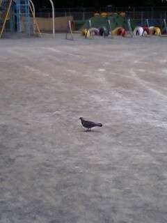 誰もいない、4時間目の校庭で、一羽のハトが悠々と何かをついばんでいました。普段の屋上には、ハトがズラリと並んでいます。