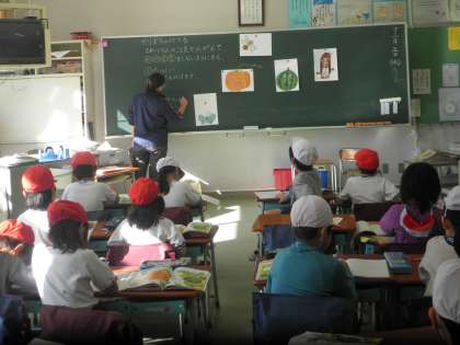 1年3組の道徳の授業を見ました。「かぼちゃのつる」という題で「わがままな行いをしない」ということがテーマでした。