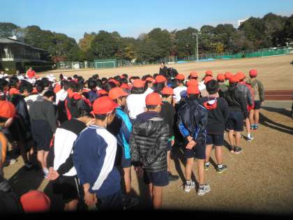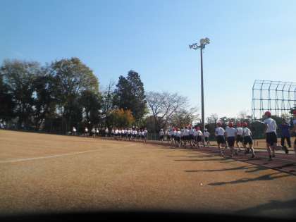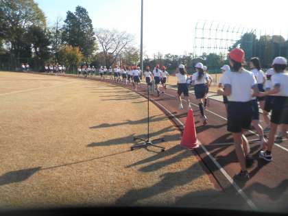 よい天気に恵まれて、高学年の持久走大会です。開会式の態度も立派です。みんなベストを尽くして頑張りました。