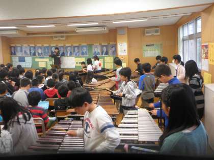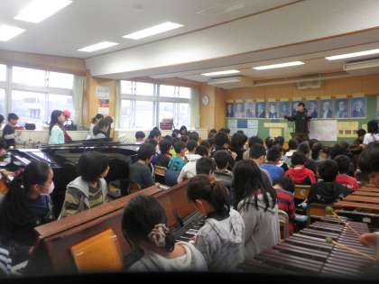 音楽発表会のための6年生の合同音楽を見ました。音楽室いっぱいに入った6年生が、外所先生の話を真剣に聞いて取り組んでいます。1月の発表会が楽しみです。