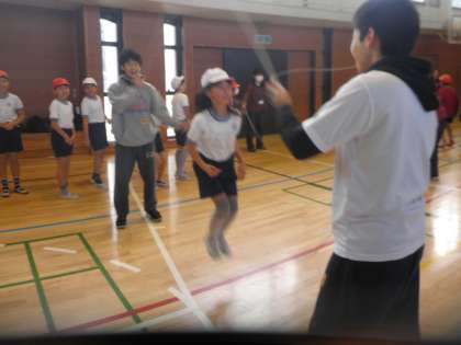 中学年もたくさんの保護者の方が回し手の手伝いに来てくださっています。ダブルダッチや大縄跳びに熱心に取り組んでいます。