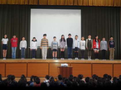 今週と来週は委員会発表集会です。今日は、運動委員会、放送委員会、音楽委員会、保健・給食委員会、集会委員会の発表でした。委員会で取り組んでいることを、パソコンや大きな上を使ってわかりやすく発表していました。さすが、高学年だなと思ったのは、みんな、マイクがなくても、しっかり大きな声で発表していることです。本当によく頑張っています。