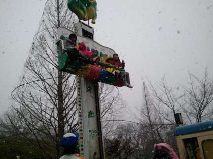 雪が沢山ふっていますが、みんな乗りたい乗り物には乗れました。