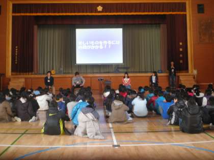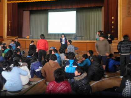 5,6年生がジュニアリーダーの方にお話を伺いました。まずは、ジュニアリーダーの方が子どもたちにゲームを指導してくれました。ジュニアリーダーとしての活動の様子です。その後、リーダーとして必要なこと、ジュニアリーダーになって何が変わったかなどの話をしてもらいました。子どもたちにとって身近な人たちの活動ですので、真剣に聞いていました。