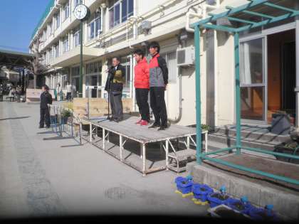 「トップアスリートともに」で、今日は全校児童や保護者の方々とデモンストレーションを見学しました。