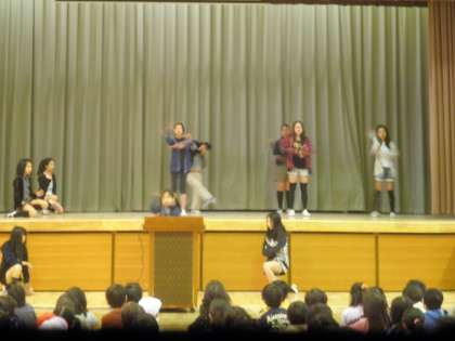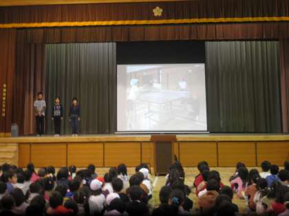 今日はクラブ発表集会の一日目です。今日は、卓球クラブ、ダンスクラブ、バスケットクラブの3つのクラブの発表がありました。