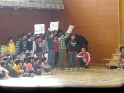 5年生は6年生のことをクイズにして出題してくれました。6年生へのインタビューもありました。