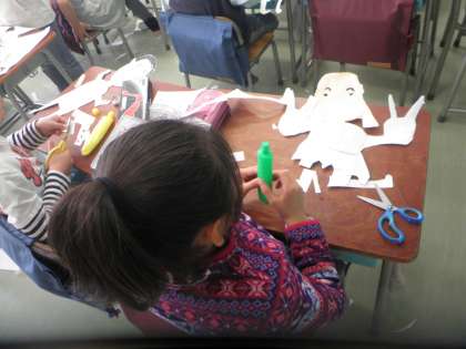 1年生が、紙版画を作っています。体の動きに気をつけて丁寧な作品ができています。