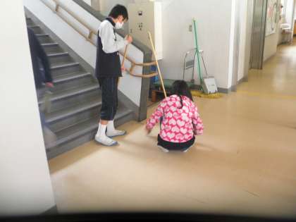 また、校庭の砂が校舎にも入ってきて掃除が大変です。みんな一生懸命に掃除をしています。