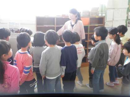 初めての学校生活一日目。くつ箱の使い方を教わったり、お手紙の入っている棚の場所を教えてもらったりと学校の様子を教えてもらっていました。
