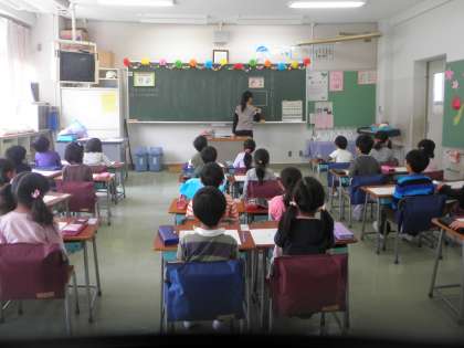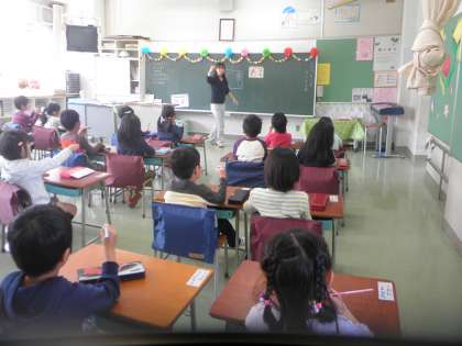 1年生が鉛筆の持ち方の学習をしていました。まず、びっくりしたのは姿勢の良さ、話の聞き方です。みんな先生の話をしっかり聞いています。鉛筆を正しく持つことはとても大切です。先生の話を聞きながら、持ち方をきちんと学習していました。