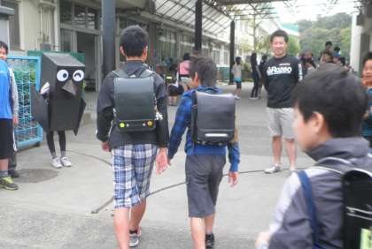 今日も保護者の方や先生、カラス君も参加してあいさつ週間に取り組んでいます。みんな大きな声であいさつできて、気持のよい朝です。