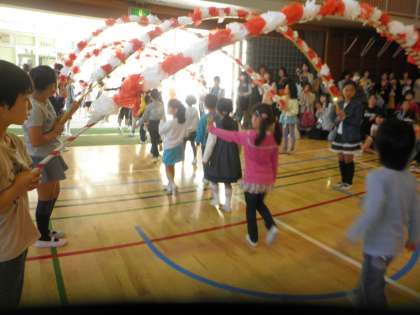 最後に1年生が呼びかけと歌「さんぽ」を元気に歌ってくれました。そのあと、今度は一人ずつで花のアーチをくぐって退場しました。