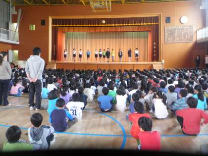 マイクなしで発表するので、子どもたちも真剣に話を聞いていました。烏山小学校でのマイクなし、メモなしの発表態度がしっかり身についてきているようです。