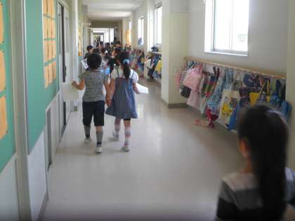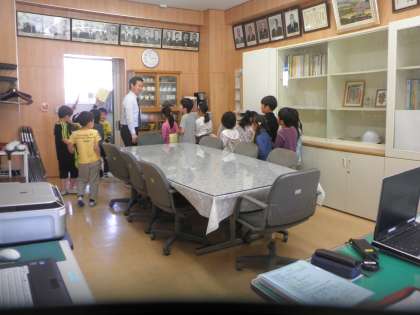 1,2年生が一緒に学校たんけんをしました。1年生と2年生が手をつないで、特別教室や校長室・主事室などを回っていました。
