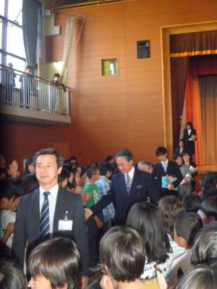 今日は離任式でした。学校を出られた、宮田校長先生、大嶽先生、村松先生、小林先生、吉田先生、川上先生、田中先生、匂坂先生が離任式にいらっしゃいました。子どものたちのお別れの言葉と花束を渡した後、それぞれの先生からお言葉をいただきました。