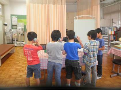毎年、1,2,3,5年生を対象に聴力検査をしています。聴力検査は、聞こえだけでなく、中耳炎等で聞こえが悪くなっている子がいないかもチェックしています。