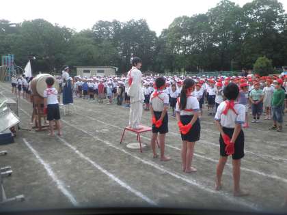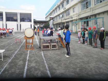今日は、校歌と応援歌を歌いました。音楽委員会の演奏と指揮で上手に校歌を歌った後、応援歌の練習です。応援歌は応援団が先導します。応援団長の指示のもと、みんな元気に歌えました。応援団もきりりとして頼もしかったです。