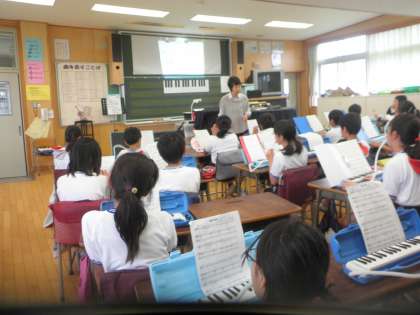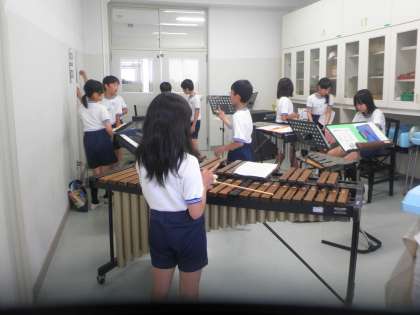 5年生の音楽の学習を見ました。今日から初めてのグループ練習で曲を練習します。みんなが声を掛け合って、練習に取り組んでいました。今日の目標は1回は、通して演奏しようでしたが、どのグループもそれ以上演奏することができたようです。さすが高学年と感心しました。