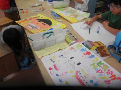 5年生が図工の授業をしています。「虫歯予防のポスター」を描いているようです。自分の伝えたいことがうまく伝わるよう、絵や言葉を工夫して描いています。