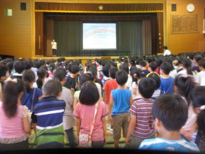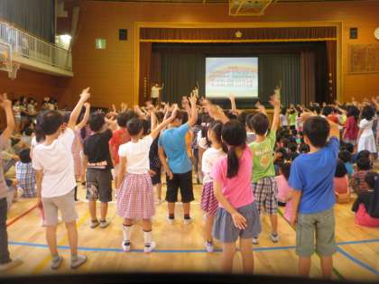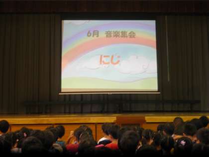 今朝は、音楽集会がありました。梅雨の季節に歌う「にじ」をみんなで歌いました。今回は音楽委員会が各クラスを回って「にじ」の手話を教えてもらい、今日の集会でみんなで歌と手話で合唱しました。