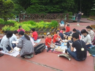 サファリ見学の後のお弁当タイム中の様子です。たくさんの動物と出会えて大満足です。会話も弾むひとときです。