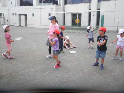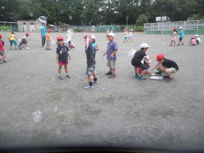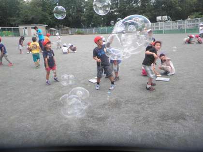 1年生が生活科でシャボン玉をやっていました。いろいろな道具を使ってシャボン玉を飛ばしていました。お天気になったので、青い空にシャボン玉がとてもきれいでした。1年生もとても楽しそうに取り組んでいました。
