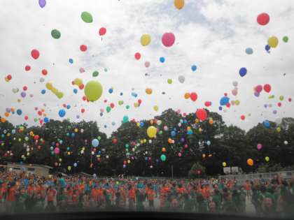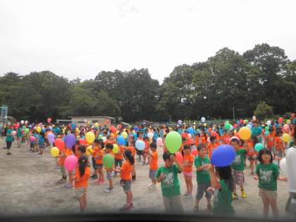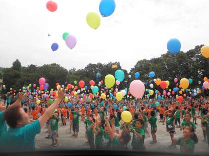 風が強くて心配でしたが、風船飛ばしも実施しました。たくさんの保護者の方々にお手伝いいただき、風船を飛ばしました。みんな歓声が上がるほど素敵でした。きっとみんなの目に焼きついたことと思います。