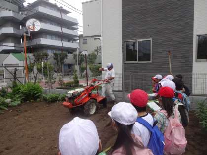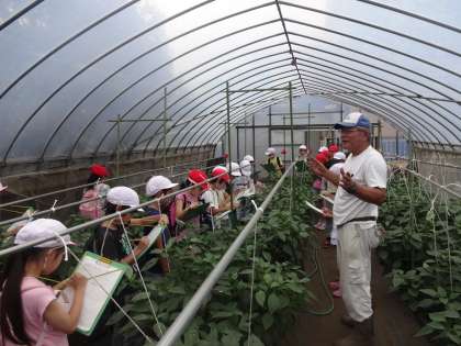 3年生が本校の避難所運営委員長の高橋光正さんの農園に見学に出かけました。ビニールハウスの見学や耕運機で土を耕し、土の柔らかさを体験させてもらいました。土作りはとても大切なことが分かりました。