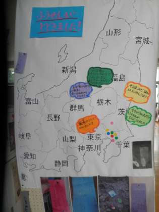 早速掲示板に貼って見てもらっています。みんなとても嬉しそうです。風船は千葉方面から茨城方面に飛んで行ったようで、印旛郡、印西市、松戸市、つくば市などからお返事が来ています。