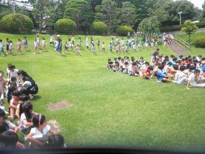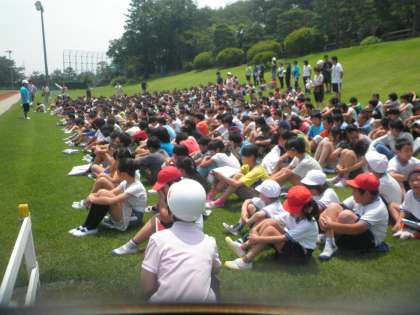 今日の避難訓練は、火災等で学校にいると危険との想定で、第一生命グランドに二次避難をする訓練をしました。どの子どもたちもおしゃべりもしないで真剣に避難することができました。