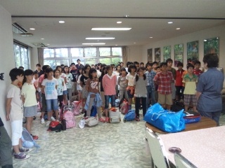 宿舎に予定通り到着しました。ホールに集まり、開園式を行いました。日光林間学園のめあて「絆を深め、団結し合い、最高の思い出をつくる。」に向けて、二泊三日の日光での生活が始まりました。雲の間から青空が見え始めました。全員とても元気です。