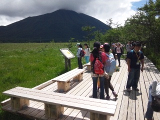 戦場が原を順調に歩いています。天候もハイキング日和に。男体山が姿を現しました。