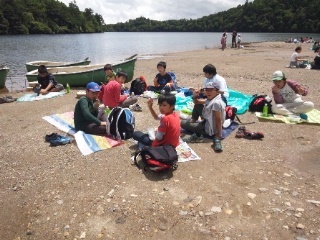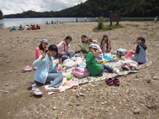 予定より早く12時30分、日光市湯元に位置する湯ノ湖湖畔に着きました。全員元気に歩き通しました。奥日光の美しい景色を眺めながら、届けていただいたお弁当を食べました。最高の味に疲れも吹き飛んだ様子です。