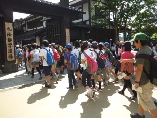 9時の開園とともに入場しました。江戸時代の衣装のスタッフから歓迎され、江戸時代体験の始まりです。