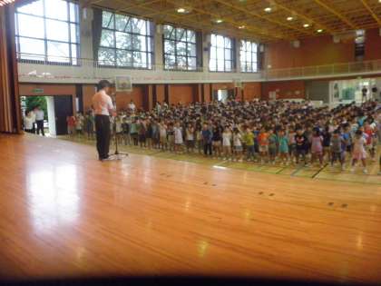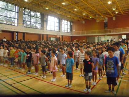 2学期の始業式です。みんな元気に登校して、2学期の始業式が行われました。校長先生は、2学期も素敵な学期になるように、2つのことを頑張ろうというお話をされました。