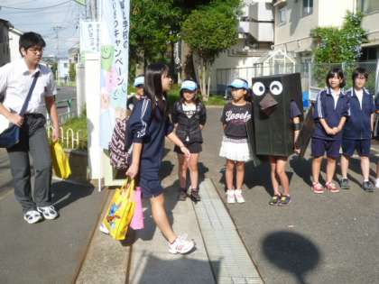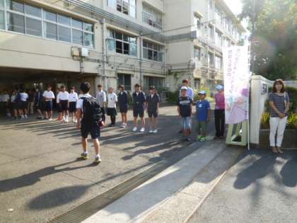 上祖師谷中と烏山小であいさつ運動の取組がんばっています。
