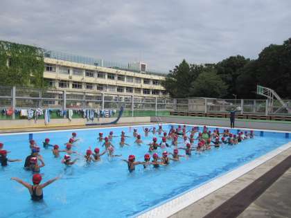 1年生最後のプールの学習は検定とプール納めを行いました。検定の後には、全員で手をつないで浮くことを楽しみました。プール納めでは各クラスの代表者が今年のプールの感想と来年の目標を話しました。学校に入って初めてのプールでしたが、約束を守り無事に終えることが出来ました。来年も楽しみです。