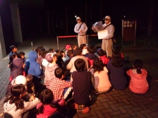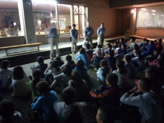 夕食後のプログラムは、ナイトハイク。四人のガイドさんの案内と説明を受けながら、学級ごとのコースで宿舎周辺を散策しました。川場の生き物の様子、真っ暗な中から見た自然の姿など一時間半ほど、世田谷では味わえない世界を体験でき思い出がまた一つ増えました。その後宿舎に戻り就寝準備、班長会、健康観察を済ませ、先ほど消灯となりました。充実した一日が終わりました。明日に向けて「おやすみなさい!」