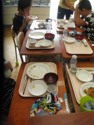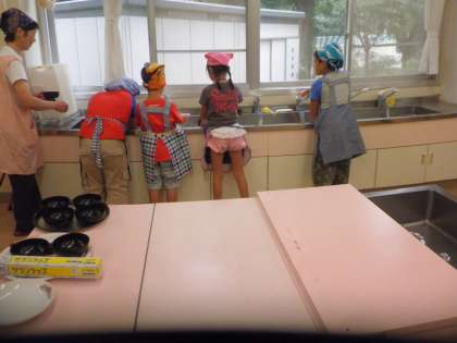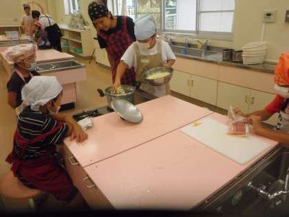 つくし学級が調理実習をしました。今日の課題は「野菜を切る」です。野菜を切っておいしい野菜スープを作りました。グループごとに入れる野菜を一つ工夫して入れてあり、それぞれのグループごとに違う野菜スープができました。みんな給食の時間にスープをいただきました。みんなたくさん食べていました。