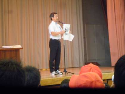 今朝の全校朝会では、校長先生が『秋』のお話をしました。また、現在実施中の交通安全運動週間についてもお話がありました。登下校の歩き方には十分に気をつけてほしいものです。