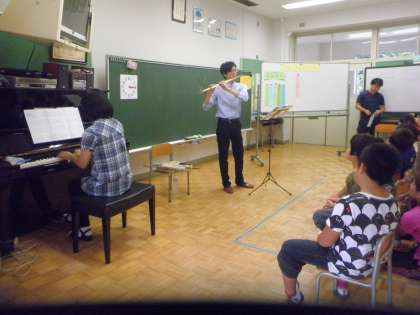 つくし学級でフルート演奏会がありました。梅林 貴史さんがフルートを演奏してくれました。楽しいお話ときれいなフルートの音色でとても気持ちのよい時間が過ごせました。