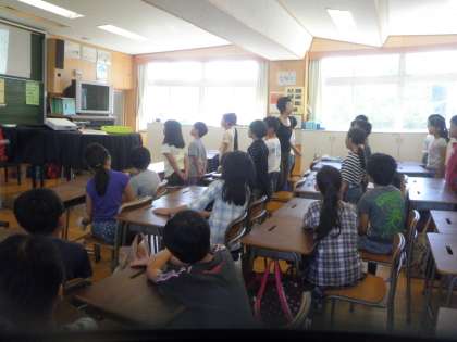 3年生の音楽の学習を見ました。記念式典に歌う歌を練習していました。半分ずつたって歌ってよい所を見合っていました。みんな姿勢よくきれいな声で歌っていました。